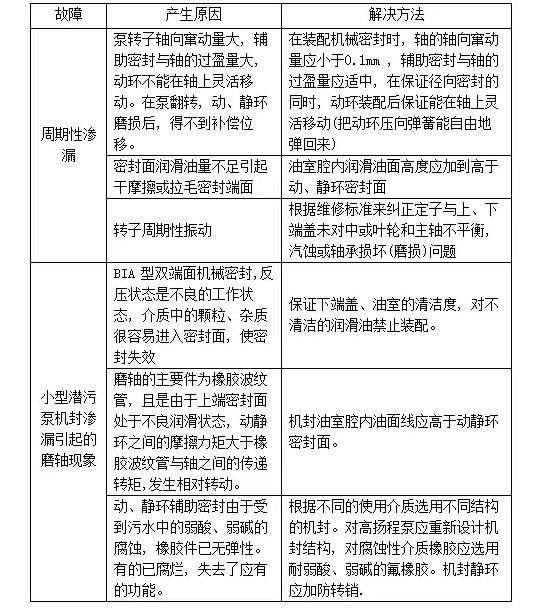 解決方法:裝配采用雙端面機(jī)械密封, 這樣有助于改善潤(rùn)滑條件,提高密封性能。
