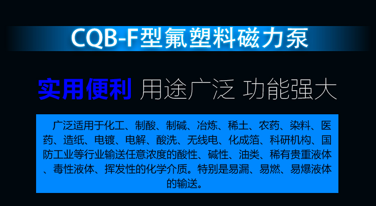 功能上:由于以上的結(jié)構(gòu)設(shè)計,材料配置,CQB-FJ系列磁力泵,可輸送含任意濃度的腐蝕性液體、高溫強酸強堿等。我公司氟塑料磁力泵、襯氟磁力泵是耐酸堿磁力泵和耐腐蝕磁力泵的氟塑料泵廠家。