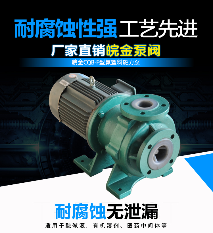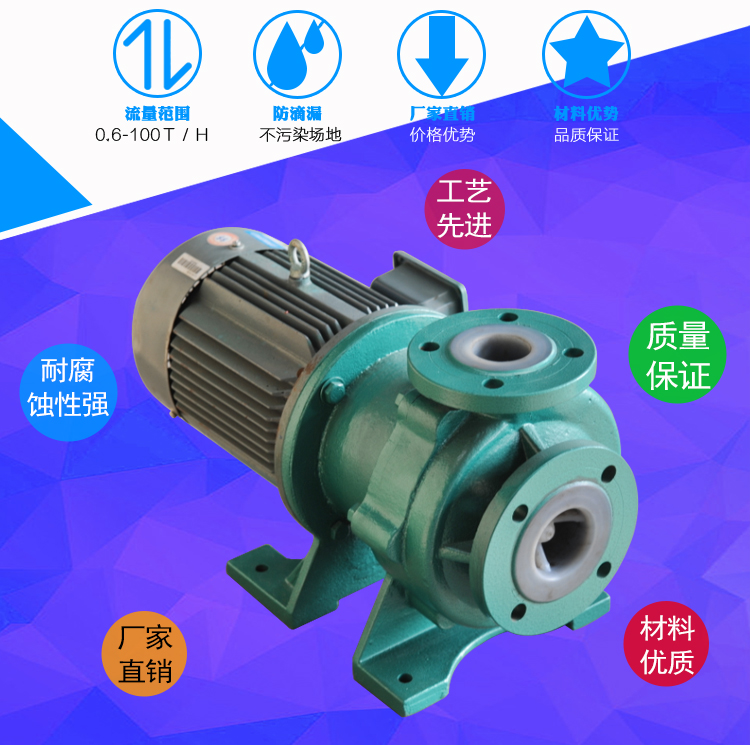 氟塑料磁力泵又稱其為氟塑料磁力離心泵、襯四氟磁力泵、氟塑料磁力驅(qū)動泵、耐腐蝕磁力化工泵,CQB-FJ襯氟磁力泵是我公司氟塑料磁力泵中的全新升級款型。氟塑料磁力泵另有:CQB-