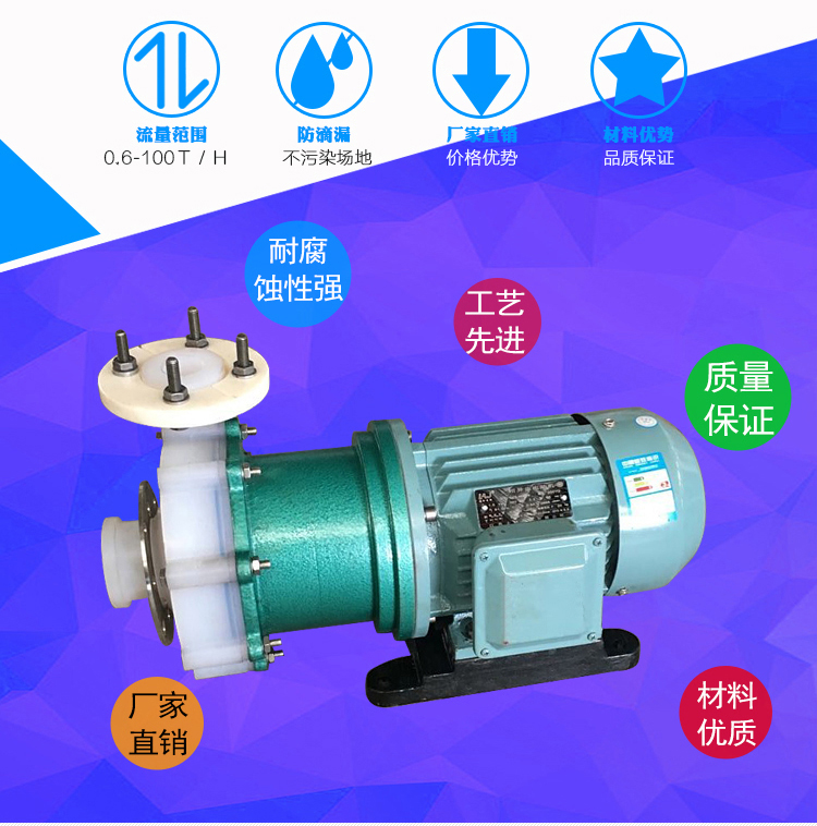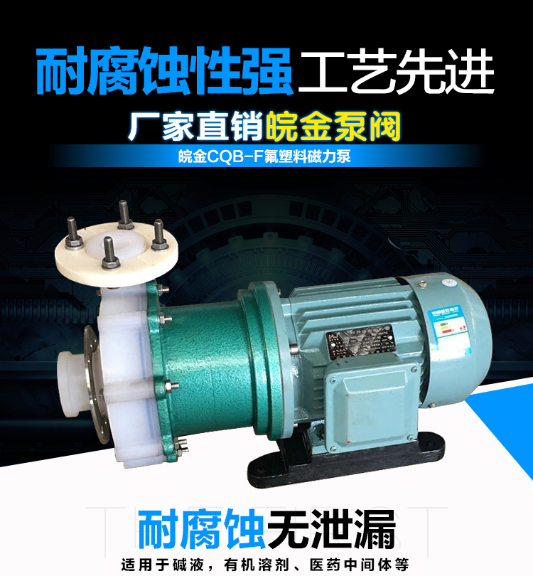 氟塑料磁力泵又稱其為氟塑料磁力離心泵、襯四氟磁力泵、氟塑料磁力驅(qū)動泵、耐腐蝕磁力化工泵,CQB-FJ襯氟磁力泵是我公司氟塑料磁力泵中的全新升級款型。氟塑料磁力泵另有:CQB-