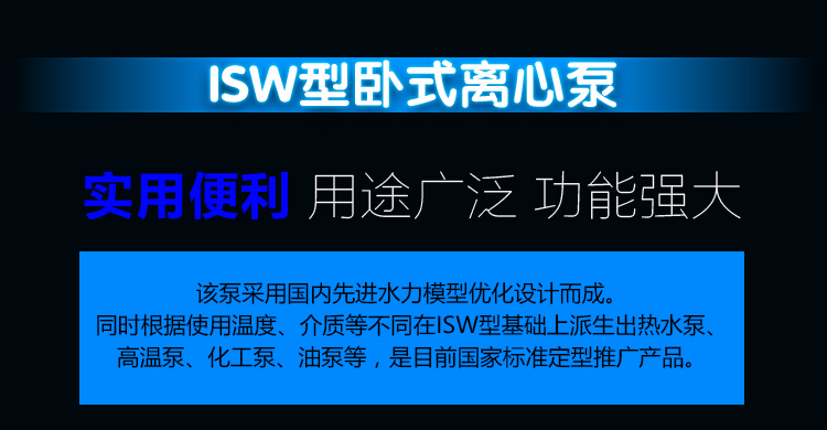 1、ISW臥式管道泵(鑄鐵材質(zhì))供輸送清水及類似于清水的液體使用,適用于工業(yè)和城市給排水、高層建筑增壓送水、園林噴灌、消防增壓、遠距離輸送、暖通制冷循環(huán)、浴室等冷暖水循環(huán)增壓及設(shè)備配套,使用溫度≤80℃。