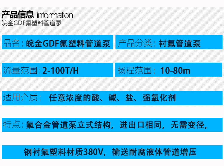 氟塑料管道泵規(guī)格參數(shù)